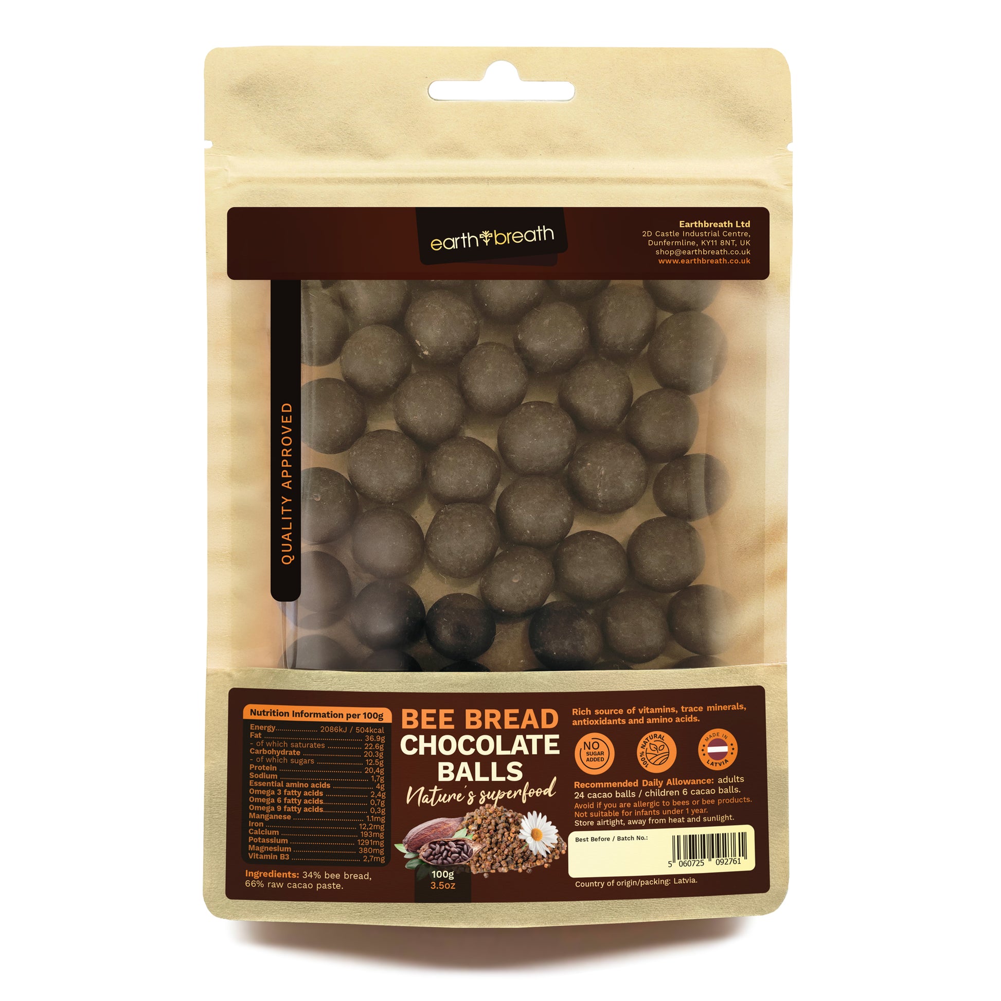 Bee Bread Chocolate Balls: made from sustainably sourced bee bread from Latvian bees, and pure raw cacao mass (Ecuadorian Arriba cacao beans) without added sugar, they maintain the authentic taste and beneficial properties of both ingredients, processed at temperatures not exceeding 40°C. Read More