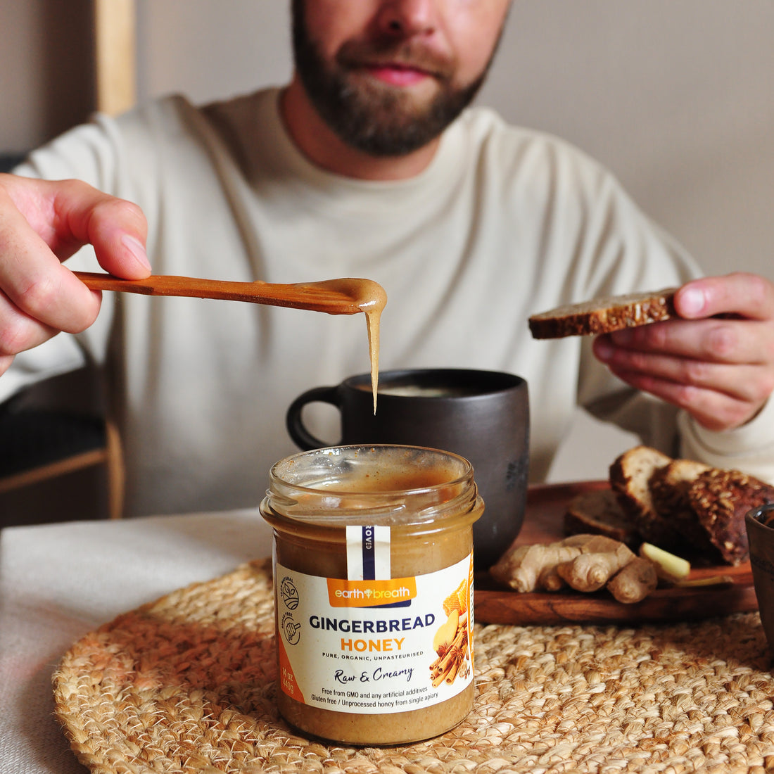Organic creamed raw honey enriched with the taste of high-quality gingerbread spices. An irresistibly delicious natural sweetener and healthy superfood with pleasantly spicy notes.